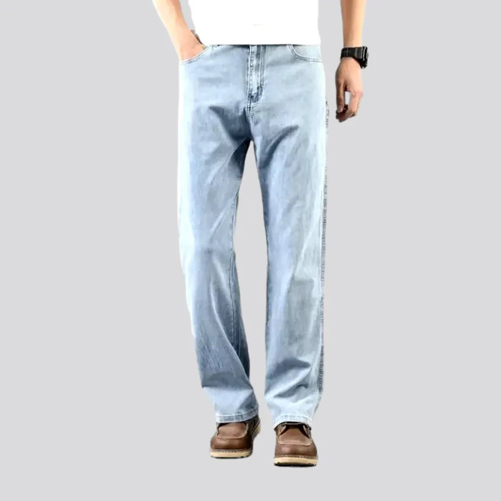 Elevate your summer vibe with our 20th-century-inspired men's whiskered jeans from our Summer Collection. These straight form jeans feature a rock-washed and sanded finish. creating a vintage look that is perfect for the fashion man. The lined detailing adds a touch of character. while the slim design offers a sleek and stylish shape. The high-waist design and zipper & button closure provide both comfort and functionality. making these jeans a must-have for any vogue-forward individual.