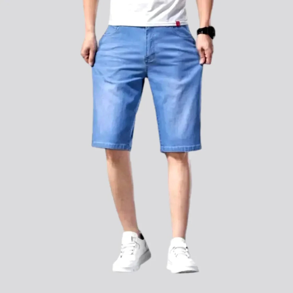 Introducing our classic. straight. sanded. whiskered. thin. knee-length. lyocell. elevated-waist. zipper & button closure. stretchy men's jean shorts from the Summer Collection a must-have for any vogue man's wardrobe!