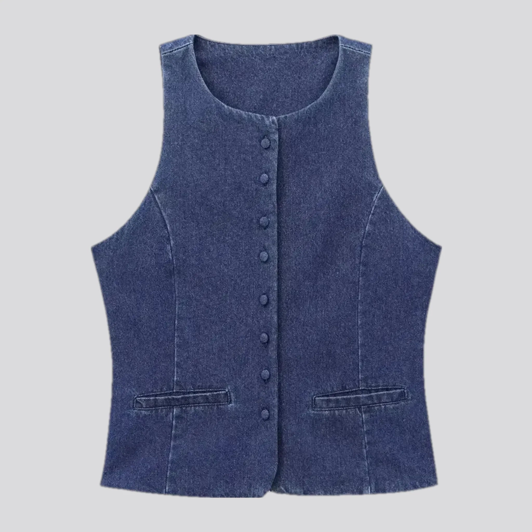 Introducing the perfect blend of style and comfort for your spring and summer wardrobe �our chic ladies' jean vest. crafted from high-quality cotton denim for that ideal breathable feel during warmer days.