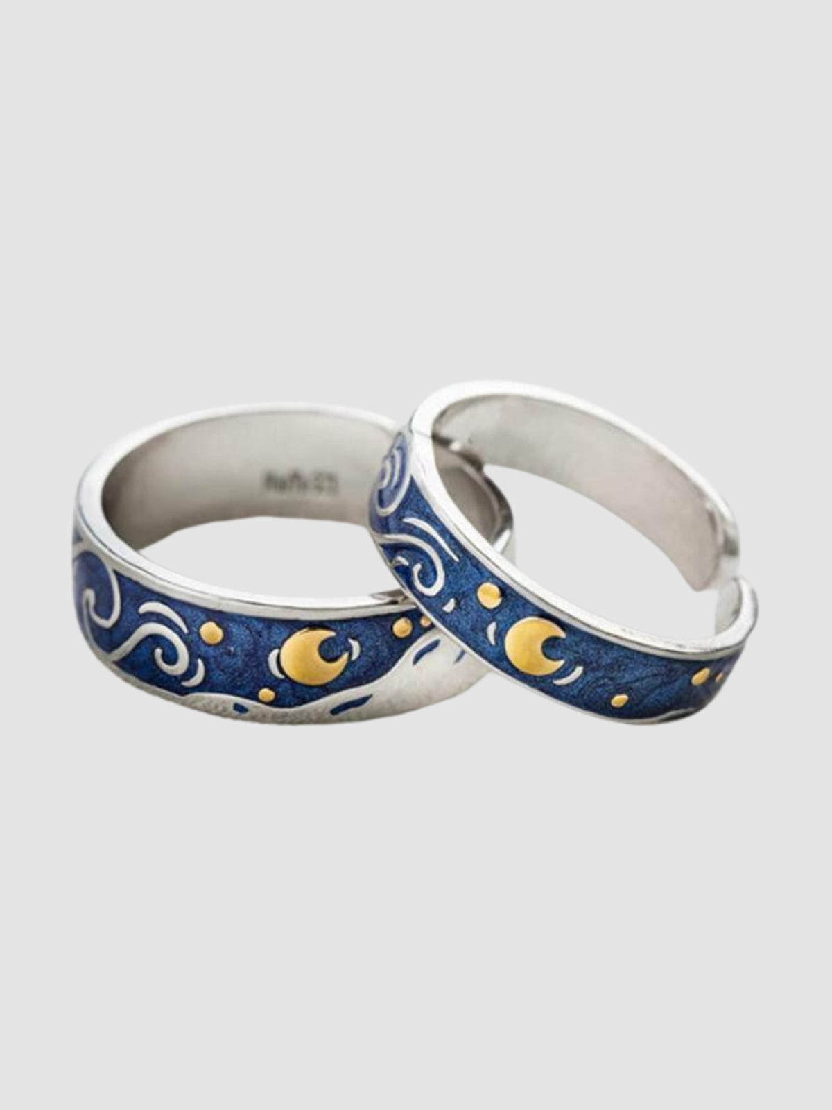 A combination of gold plated cloisonne. midnight blue enamel and an oil dripping design creates a miniature version of Van Gogh's famous Starry Night painting. This piece of work reminds us to trust our dreams and not believe the critics of the world. Whenever you're struggling to keep running after that dream in your heart. don't compromise or give up. Just look down at this ring and remember that the journey to fulfilling marvellous dreams have ups and downs. so keep on running.