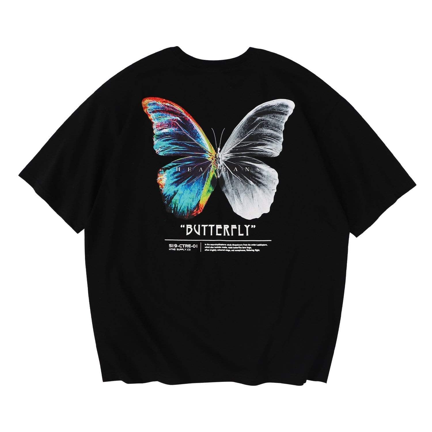 Original designer: Summer new dark high street retro hip-hop loose butterfly theme printed short-sleeved T-shirt.