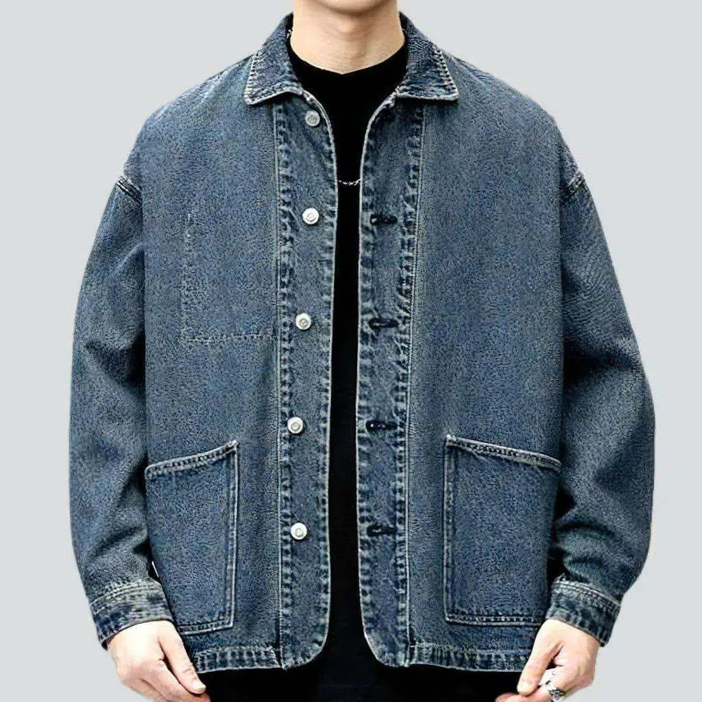 Introducing our Autumn-Winter Collection Vintage Roomy Men's Jeans Jacket the perfect blend of classic style with a modern twist! This 90s-inspired stonewashed denim jacket features an oversized fit and buttoned closure. topped with Viscose accents for an added dose of luxury.