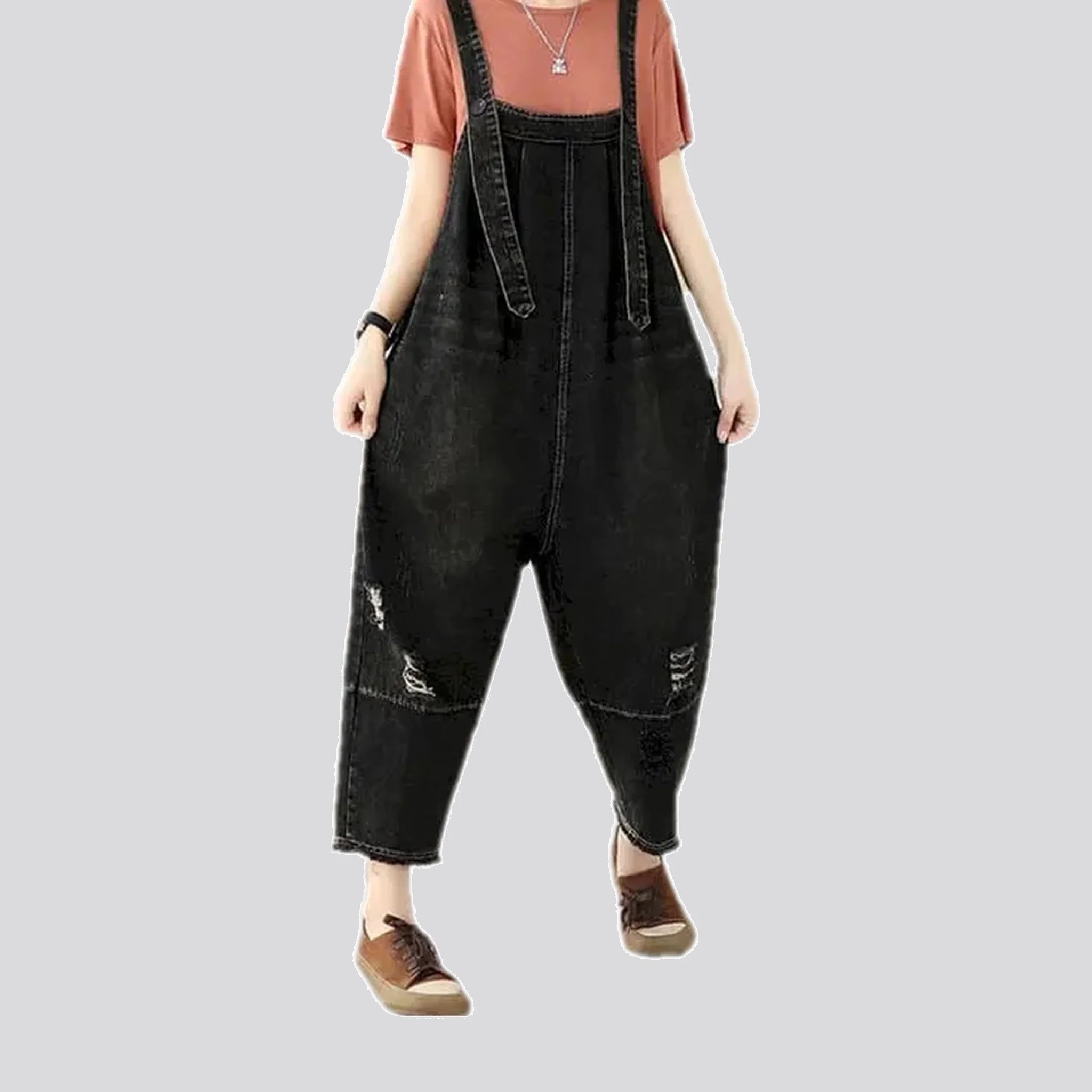Discover the perfect blend of retro charm and contemporary style with our women's denim dungarees. designed to elevate your casual wardrobe for any season. Featuring a striking square neckline that adds a touch of elegance and no sleeves for ultimate comfort. these dungarees are perfect for spring. summer. and fall alike. The unique baggy-fit offers both comfort and a trendy silhouette. while the frayed hem adds an edgy. worn look that fits perfectly with today's fashion-forward street style. Crafted from a premium blend of cotton. denim. and polyester. they promise durability and a soft feel against the skin. Whether you're dressing them up for a day out or keeping it casual for brunch. these dungarees are the ultimate one-piece style that pairs well with any top.