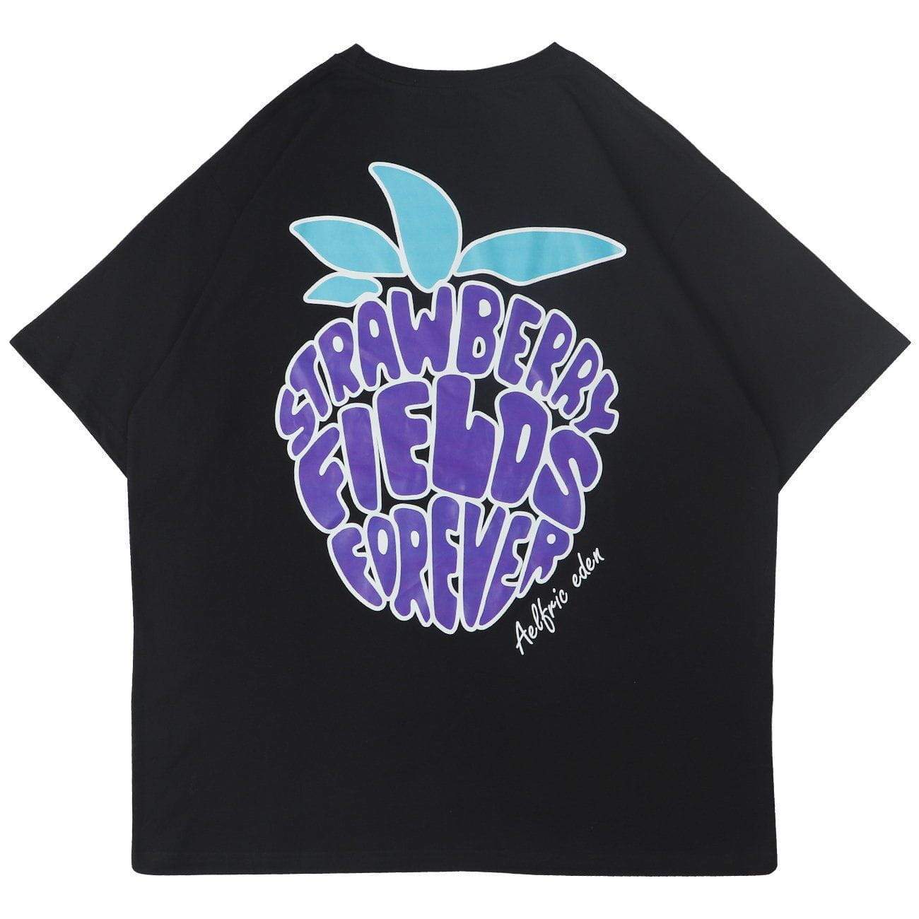 Original designer: Summer new style European and American personality trend hip-hop comfortable strawberry letters printed cotton short-sleeved T-shirt.