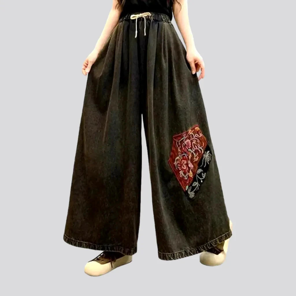 With their unique embroidered details and casual culottes design. these pants are sure to become a staple in your wardrobe. Plus. the tall-waisted design and drawstring closure make them suitable for any body type. ensuring a flattering and leisurely form for everyone.