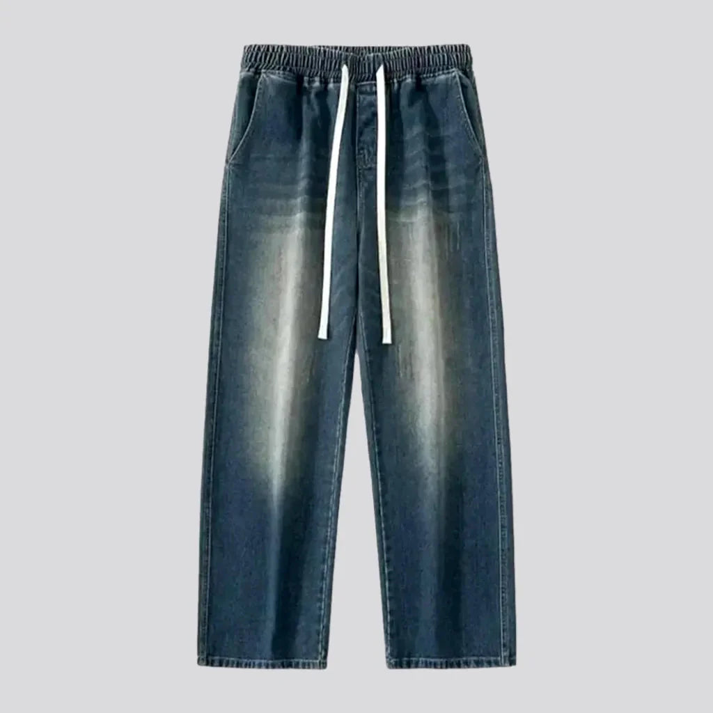 Crafted with meticulous attention to detail. these jeans boast a sanded finish that adds depth and character to your look. The drawstrings closure allows for a perfect fit. while the high-waist design elongates your cut.
