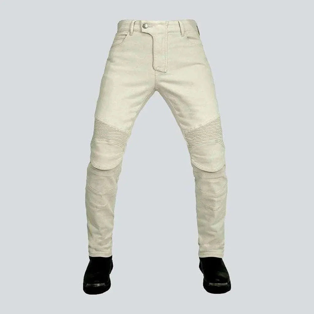 Welcome the new season with our white men's biker jeans from Spring-Summer Collection! This slim-fit. mid-rise jeans blend the traditional biker style with monochrome hues for a enduring look that will take you anywhere.