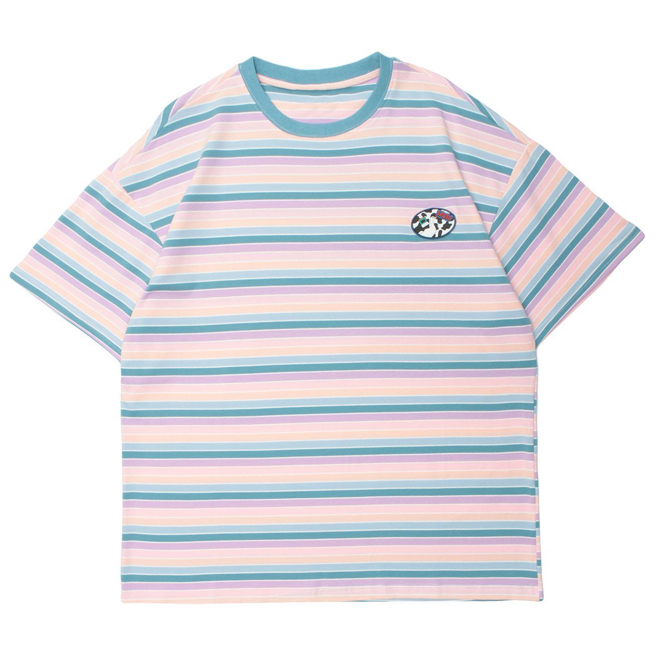 Original designer: Summer new style European and American personality trend hip-hop comfortable retro striped duck rubber stamp cotton short-sleeved T-shirt.
